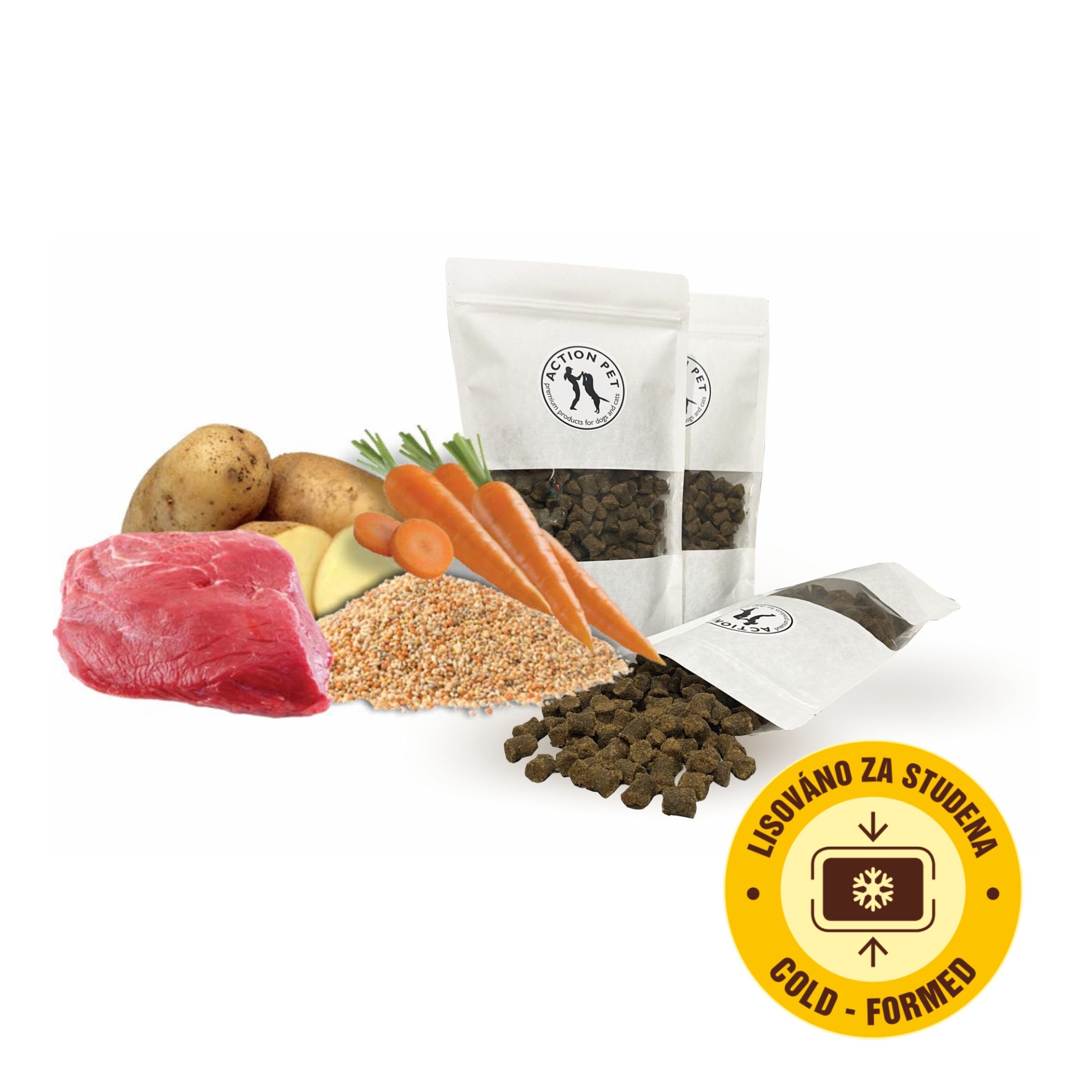 Pamlsky ACTION PET se vyrábí z různých druhů masa, kuřecího, hovězího, jehněčího, jeleního, koňského, pštrosího a bílé ryby. Toto z nich dělá vysoce hodnotnou odměnu, pro kterou budou psi dychtivě pracovat.